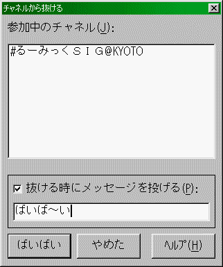 上記の例では、SIGるーみっくわーるど用のIRCチャンネル名「#るーみっくSIG」を指定しています。
